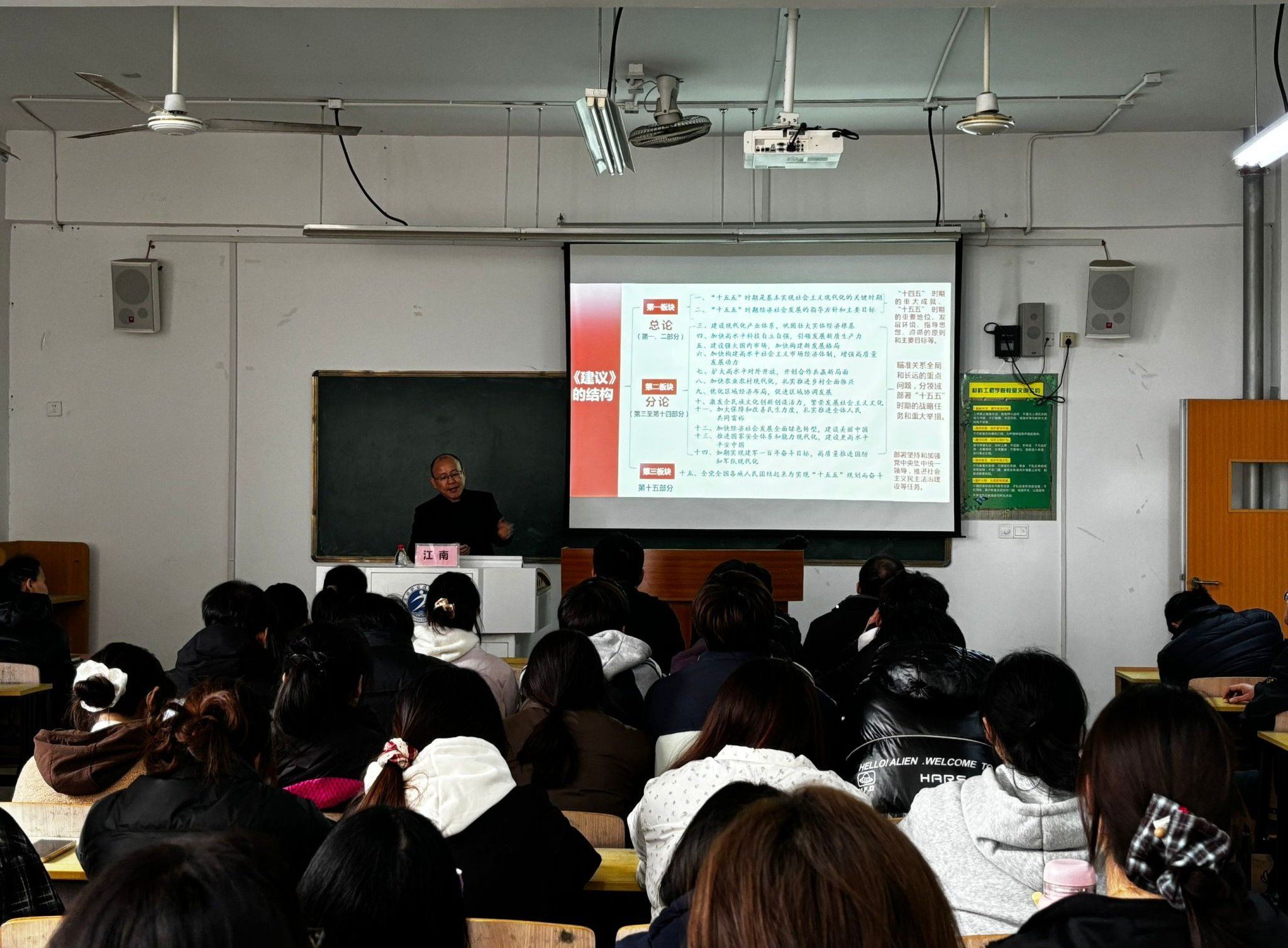 宣讲中,江南副教授围绕党的二十届四中全会核心主题、重大成果与深远意义,聚焦“十五五”时期发展定位,深入解读其指导方针、目标任务与关键举措,系统阐释坚持党的领导的重要意义,宣讲内容全面透彻、重点突出,为师生准确把握全会精神提供了清晰指导。